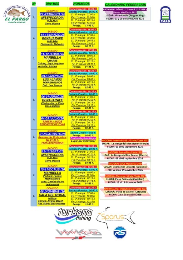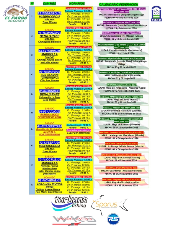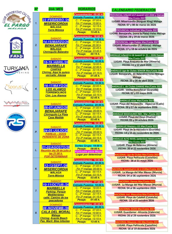 TANTO CALENDARIO DEL CLUB, COMO CALENDARIO FEDERATIVO